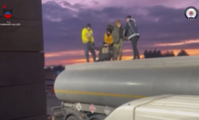 Diyarbakır’da polisin şüphe üzerine durdurduğu bir çekiciye bağlı atık tankerinden, insanlık dışı koşullarda saklanmış 32 düzensiz göçmen çıktı. Olayla ilgili gözaltına alınan 5 şüpheliden 4’ü tutuklanarak cezaevine gönderildi.