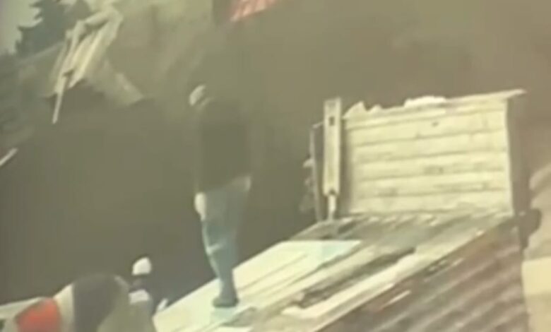 TIR’dan inşaat malzemesi indirildiği sırada bir işçiye şimşek çarptı. Olay anı güvenlik kamerası tarafından saniye saniye kaydedildi.