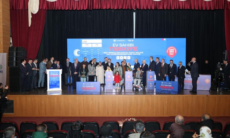 Van’da “Yüzyılın Konut Projesi” çerçevesinde inşa edilecek 6 bin 803 sosyal konut için hak sahipliği belirleme kuraları noter huzurunda çekildi. Van Devlet Tiyatrosu Salonu’nda düzenlenen “Ev Sahibi Türkiye Kura Çekiliş Töreni” ile konutların asil ve yedek isim listeleri netleşti. Törene Çevre, Şehircilik ve İklim Değişikliği Bakan Yardımcısı Ömer Bulut, Van Valisi Ozan Balcı, milletvekilleri, TOKİ yetkilileri ve çok sayıda vatandaş katılım sağladı.