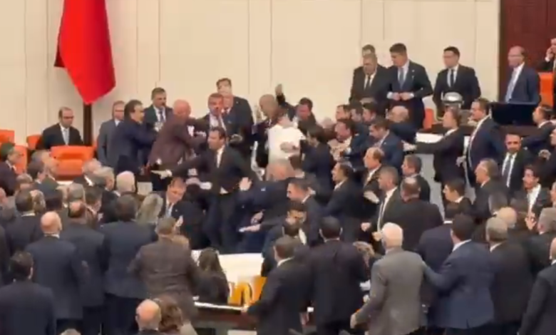 Meclis Başkanvekili Bekir Bozdağ’ın usul tartışması talebini reddedip Bakan Gürlek’i kürsüye davet etmesiyle tansiyon yükseldi. CHP milletvekillerinin kürsüye yürümesi üzerine AK Partili vekiller de kürsü çevresinde etetten duvar ördü. İki grup arasında çıkan arbedede AK Parti Ankara Milletvekili Osman Gökçek ile CHP Şanlıurfa Milletvekili Mahmut Tanal yumruk yumruğa kavga etti. Yaşanan şiddet olayları nedeniyle oturuma ara verildi.